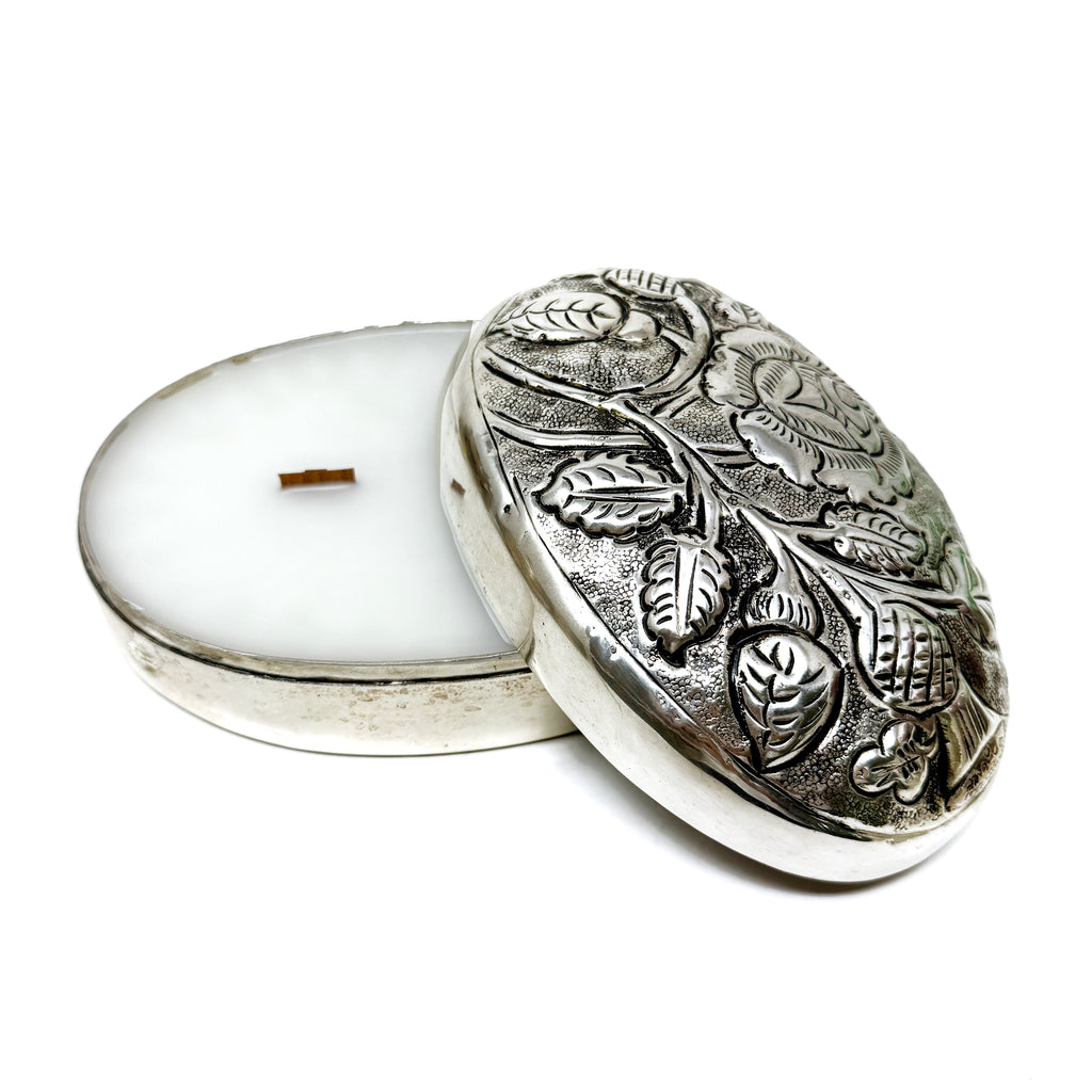 We ask that buyers understand that each vessel they choose is authentically vintage and may be adorned with markings, tarnish, patina, scratches, and/or verdigris. However, we understand that pieces may sometimes arrive damaged from shipping. We gladly accept returns on vessels that have been damaged in transit, as well as candles that do not work properly within 90 days of purchase. We ask that photos be sent in those situations so that we can assess whether or not a product is eligible for return. Buyer is responsible for shipping costs back to Old Flame Candle Co. Due to limited store space, we do not hold candles - no exceptions.