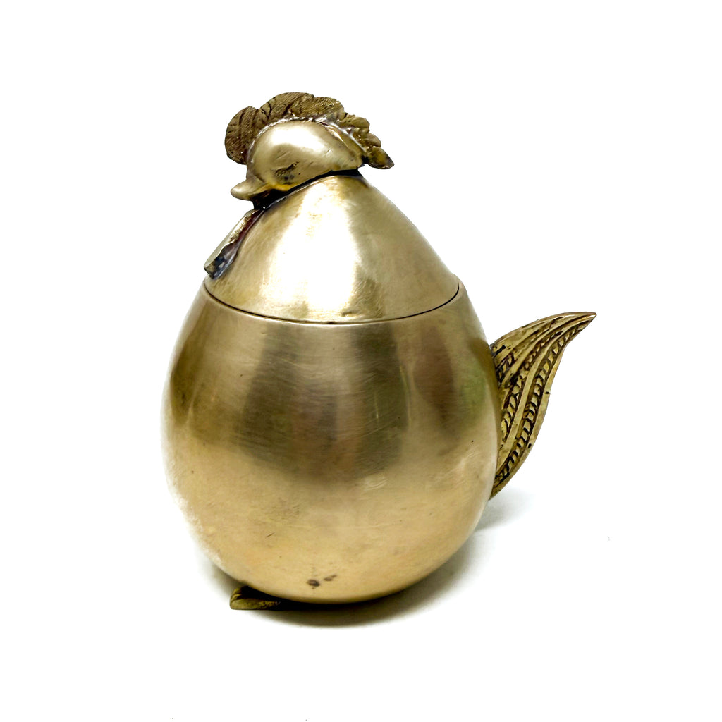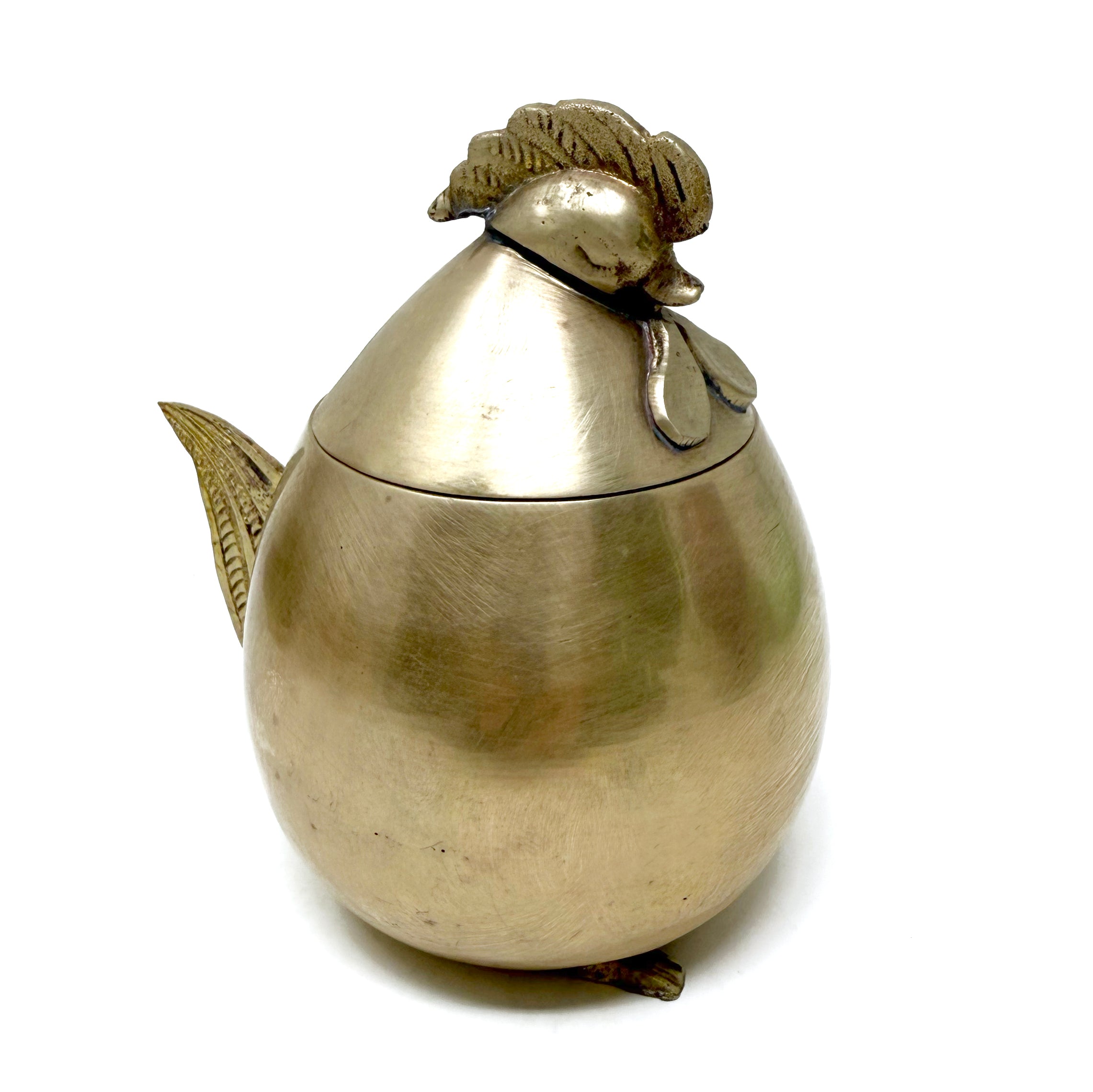Cora is the perfect way to add some farm-loving flair. Stylish and charming, she adds a touch of rustic appeal while providing plenty of character to bring a bit of the countryside indoors. Cora measures 5" tall (lidded) x 3.25" diameter and dates to the 1970s.
