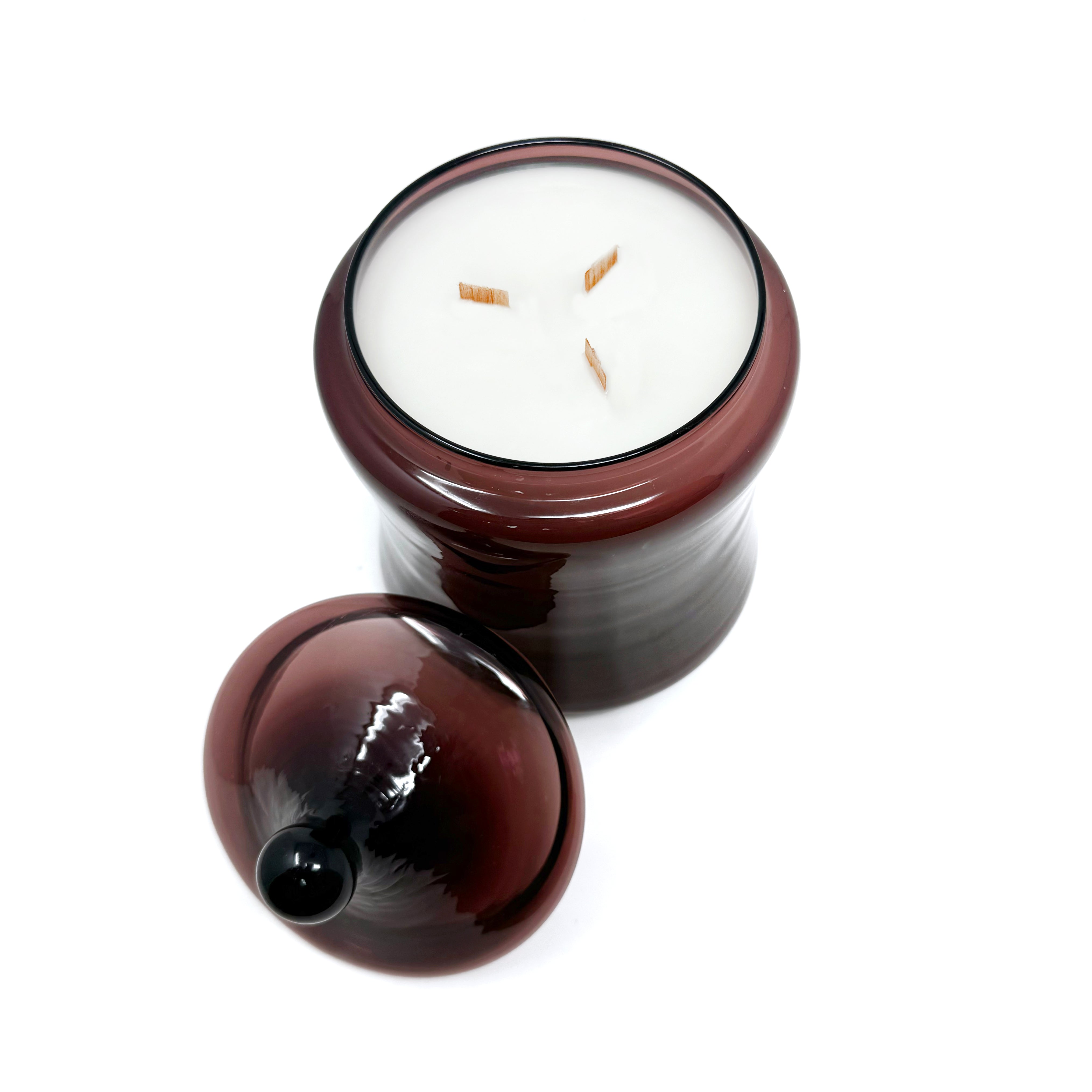 Deep, dark, and dripping with vintage charm, this Empoli apothecary jar is your new best friend for spooky season and sweater weather alike. Helen dates to the 1960s and measures 5" diameter x 8.5" tall and holds a substantive wax load.