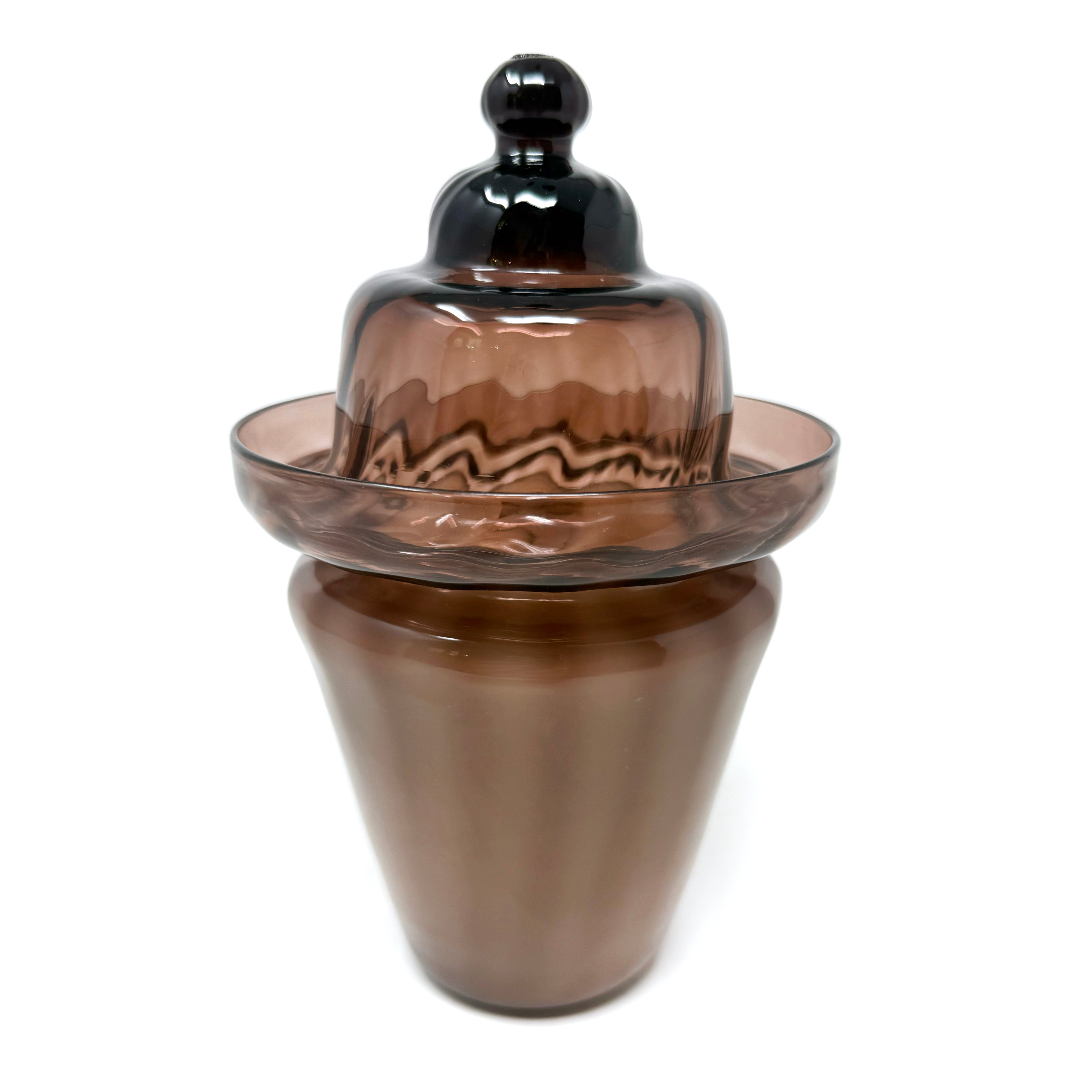 A touch of deep purple Empoli magic that make fall nights glow with old-world charm! Mitzi dates to the 1960s and measures 5" diameter x 8" tall (lidded). A timeless and highly collectible piece of glass!