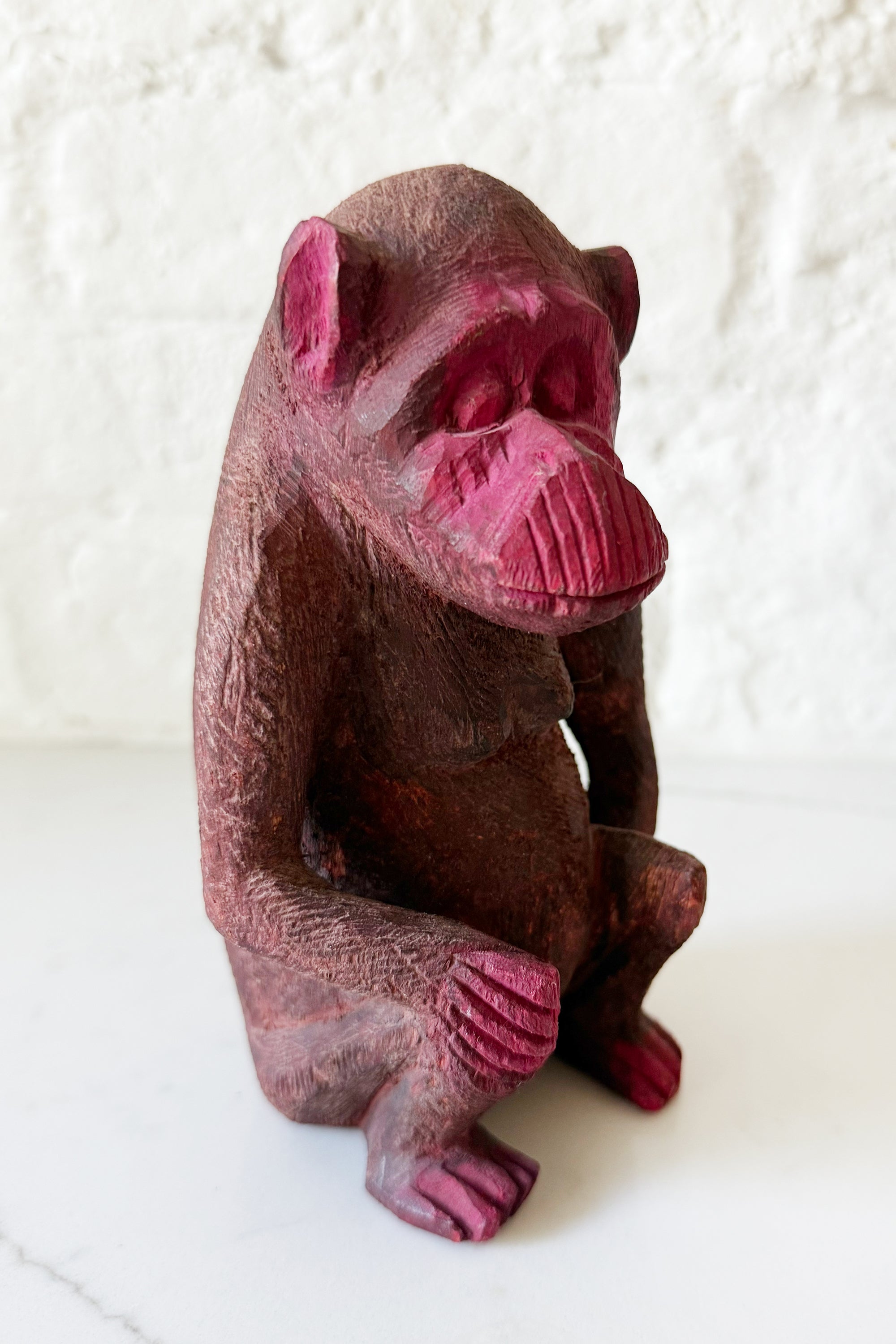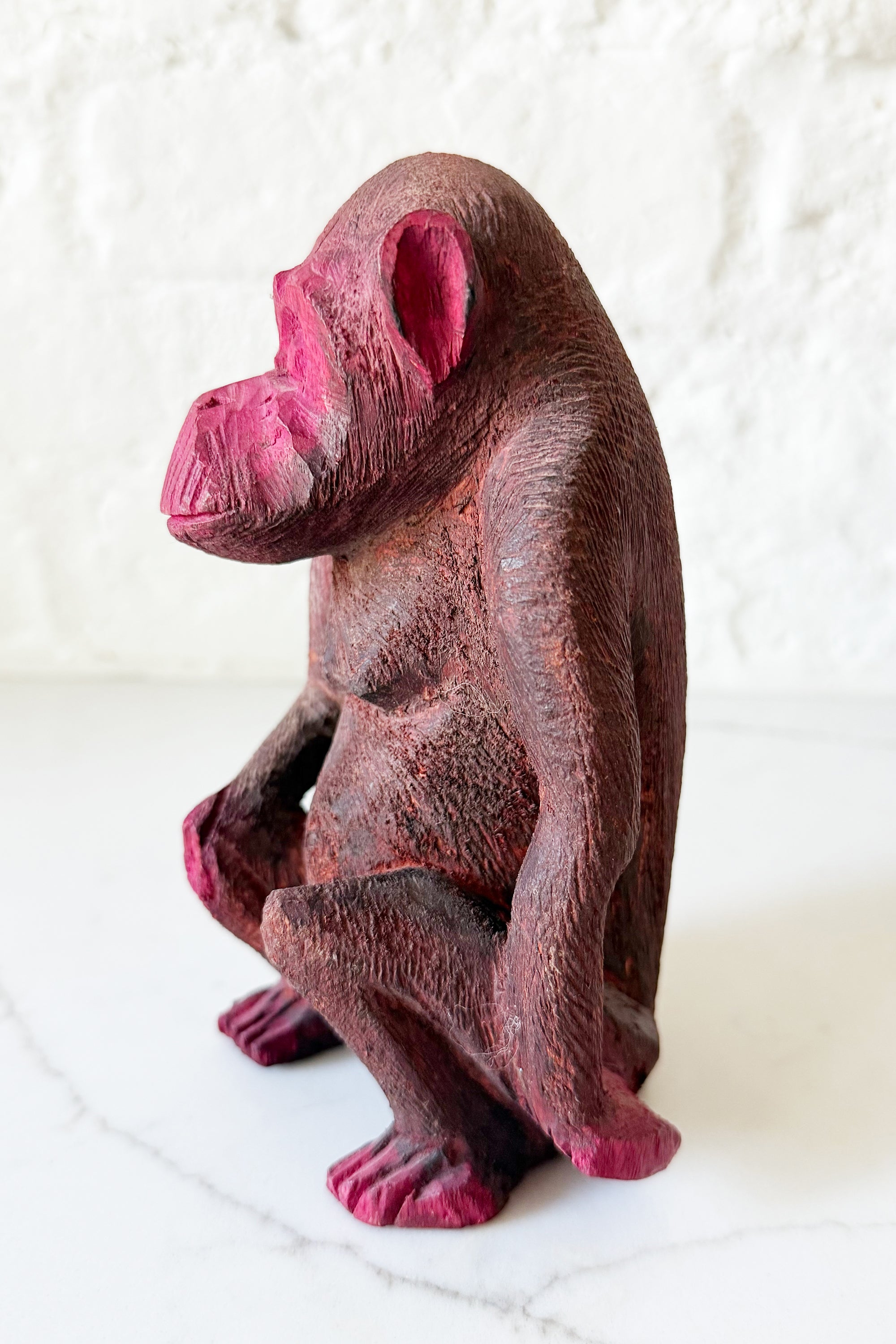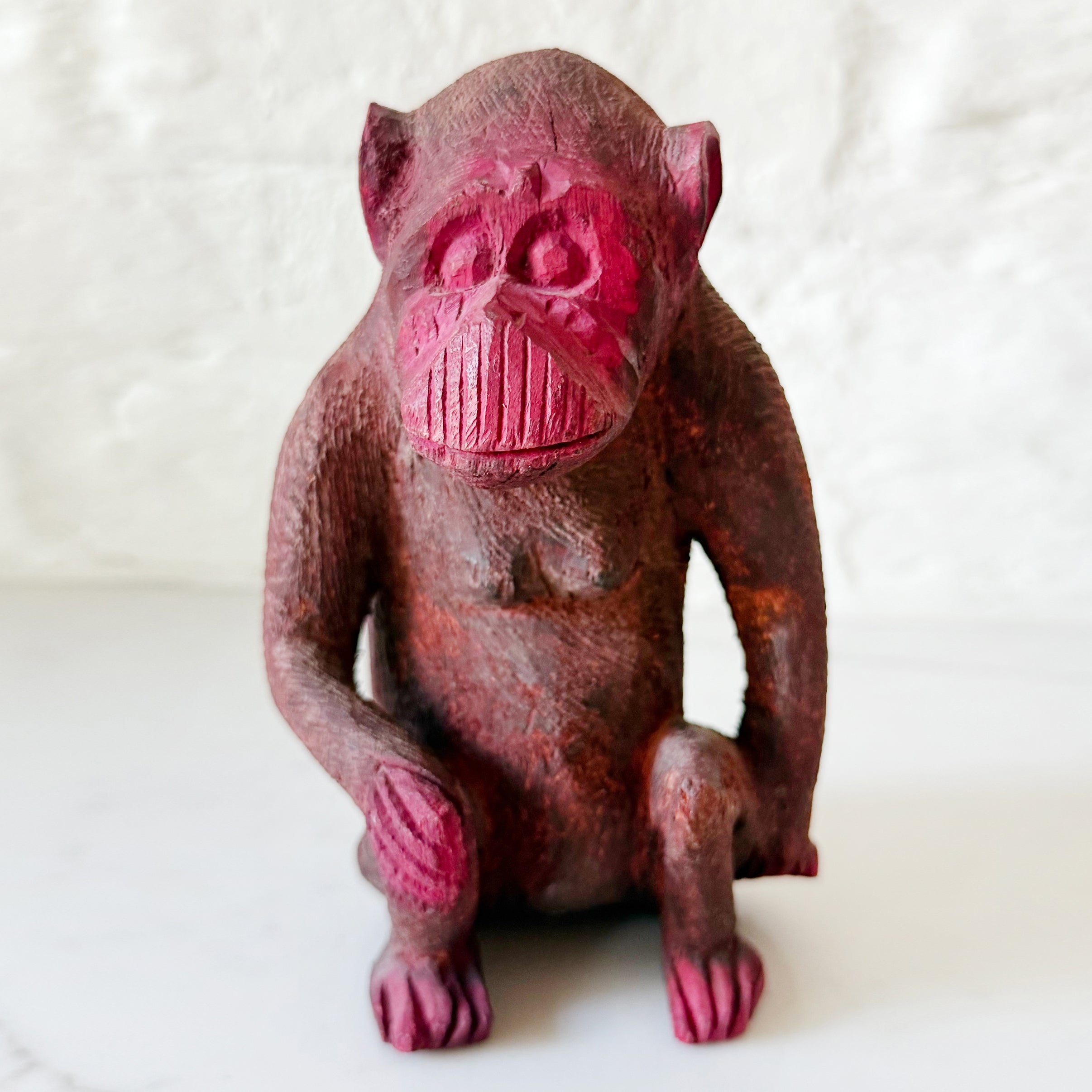 Because every room deserves a little mischief! This hand-carved monkey brings playful color and sculptural charm in equal measure. This little monkey figure measures 8" tall.