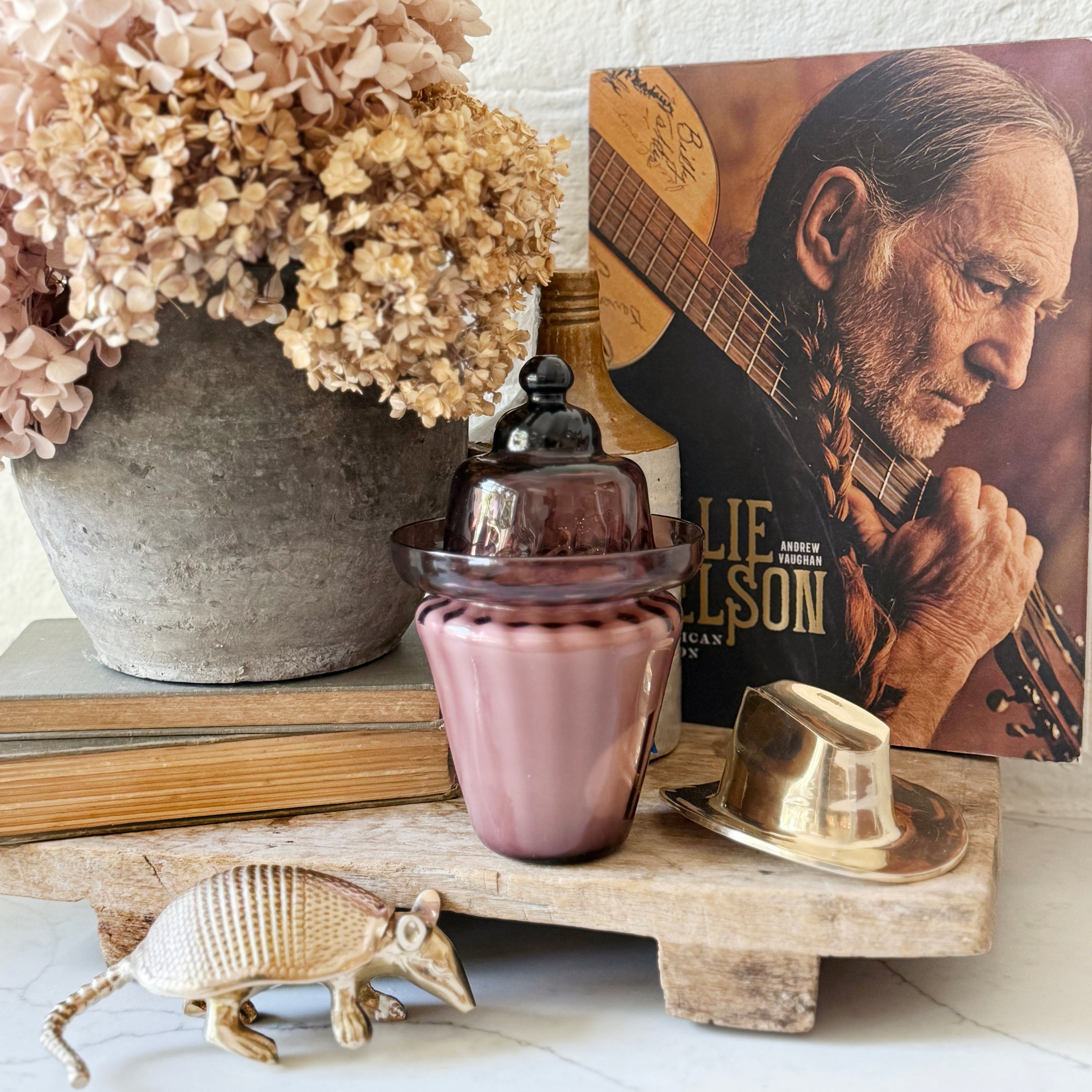 We ask that buyers understand that each vessel they choose is authentically vintage and may be adorned with markings, tarnish, patina, scratches, and/or verdigris. However, we understand that pieces may sometimes arrive damaged from shipping. We gladly accept returns on vessels that have been damaged in transit, as well as candles that do not work properly within 90 days of purchase. We ask that photos be sent in those situations so that we can assess whether or not a product is eligible for return. Buyer is responsible for shipping costs back to Old Flame Candle Co. Due to limited store space, we do not hold candles - no exceptions.