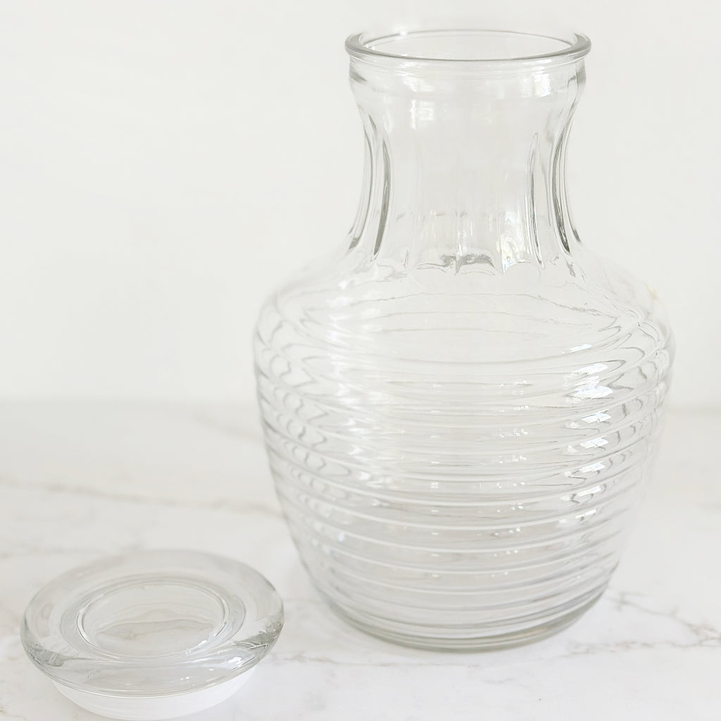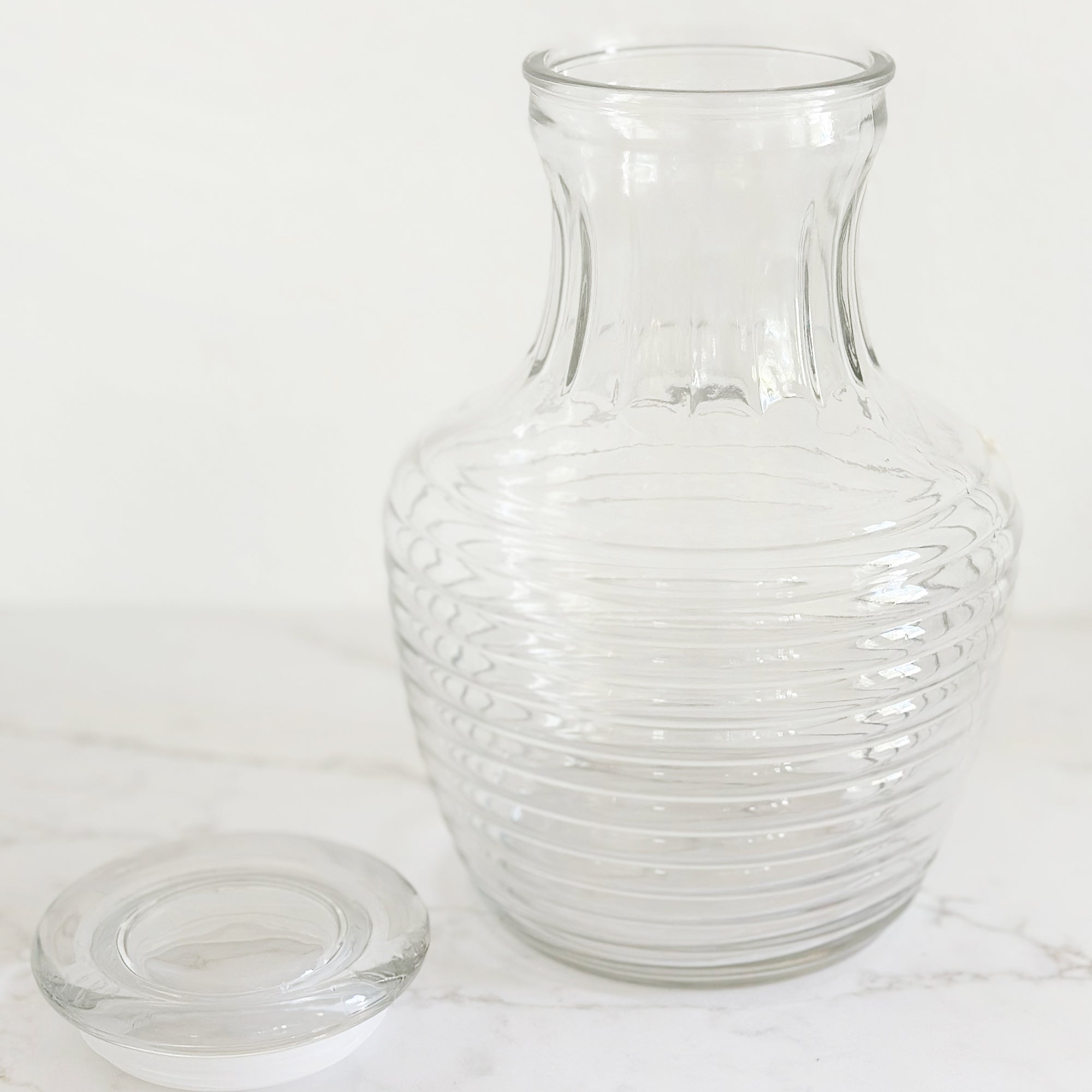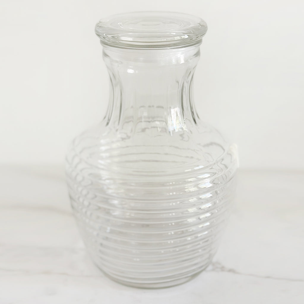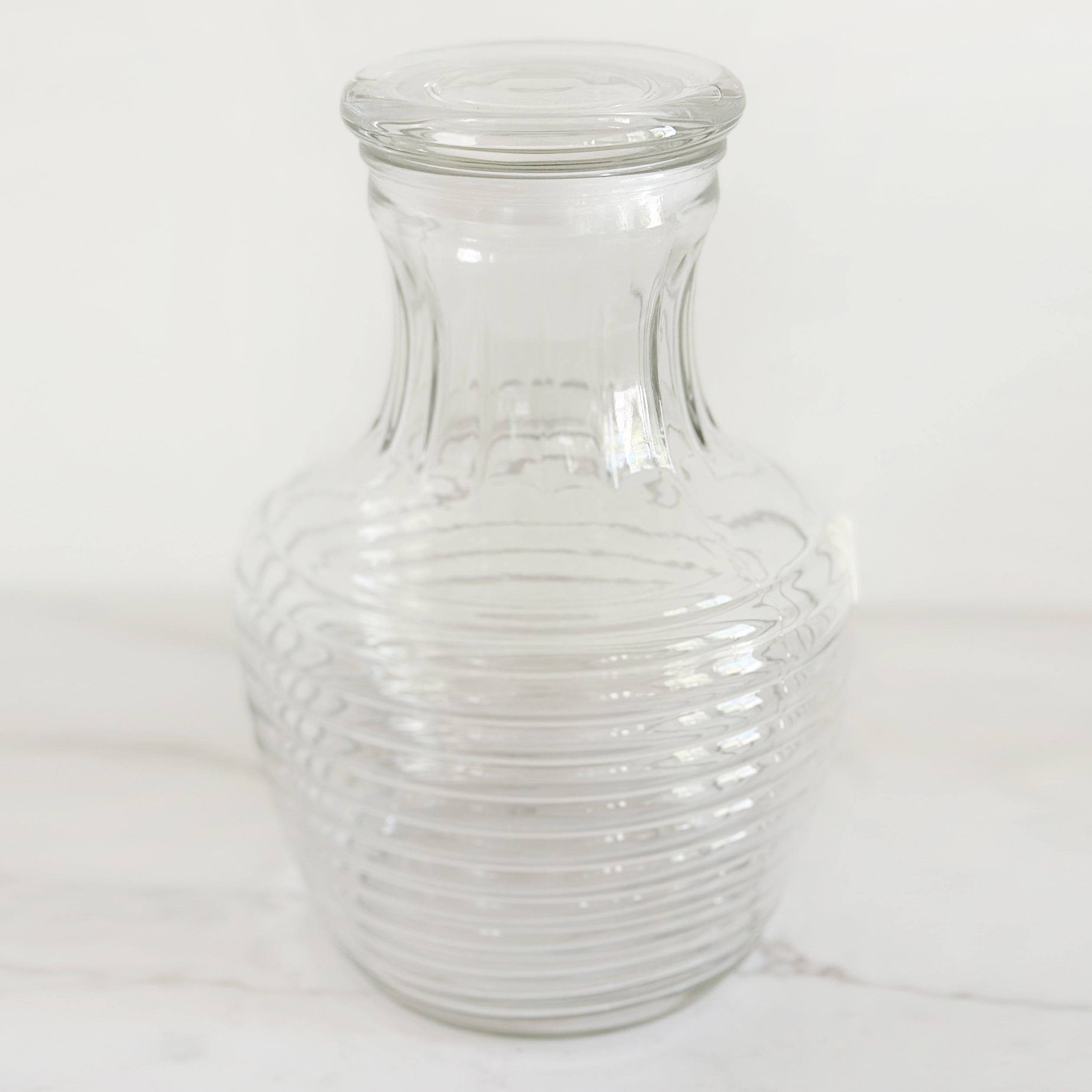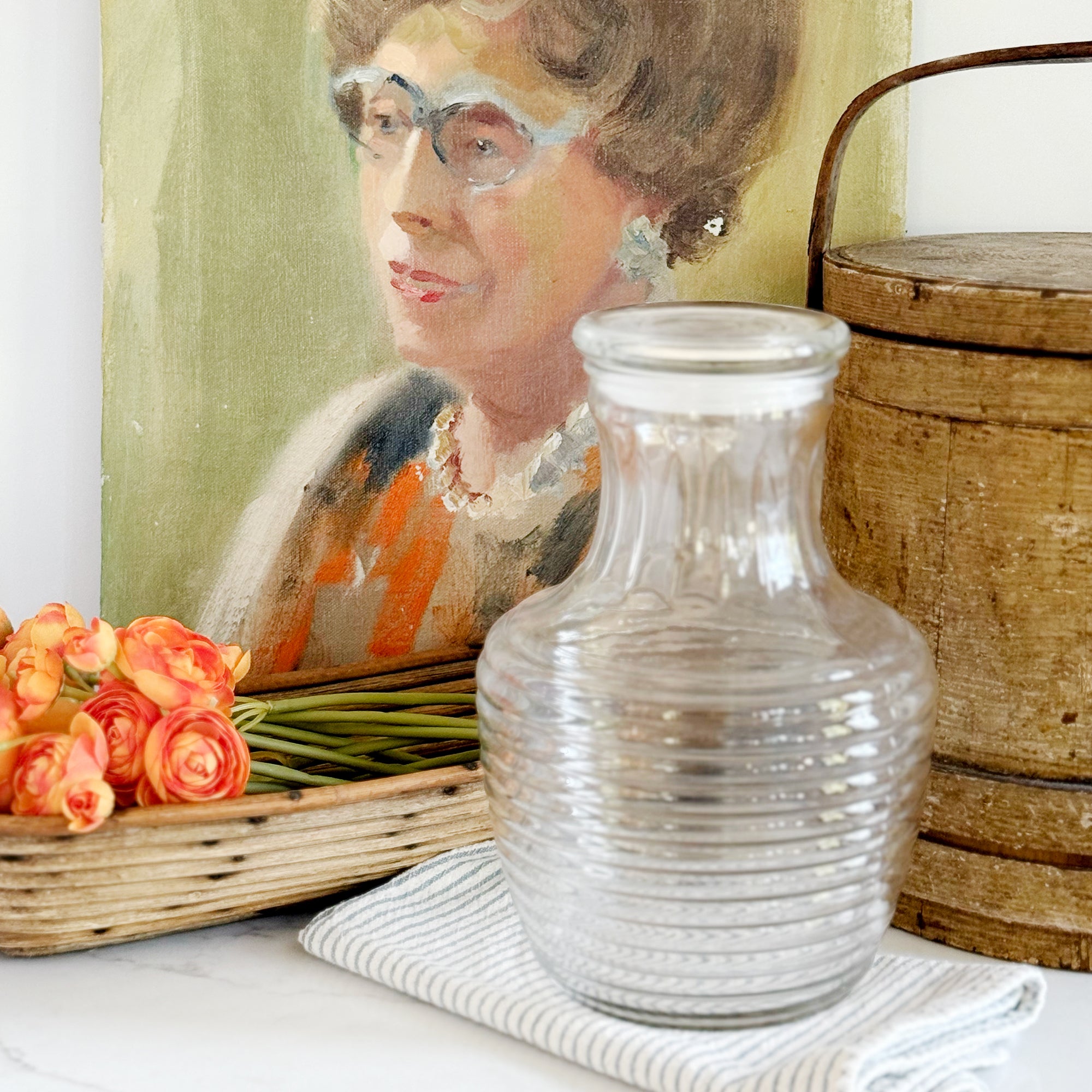 This 1970s ribbed glass pitcher is proof that even your lemonade deserves a little retro flair. With its sleek ribbed design and sturdy build, it’s the perfect blend of function and funky. Hydration has never looked so good! Measures 6" diameter x 9.5" tall.