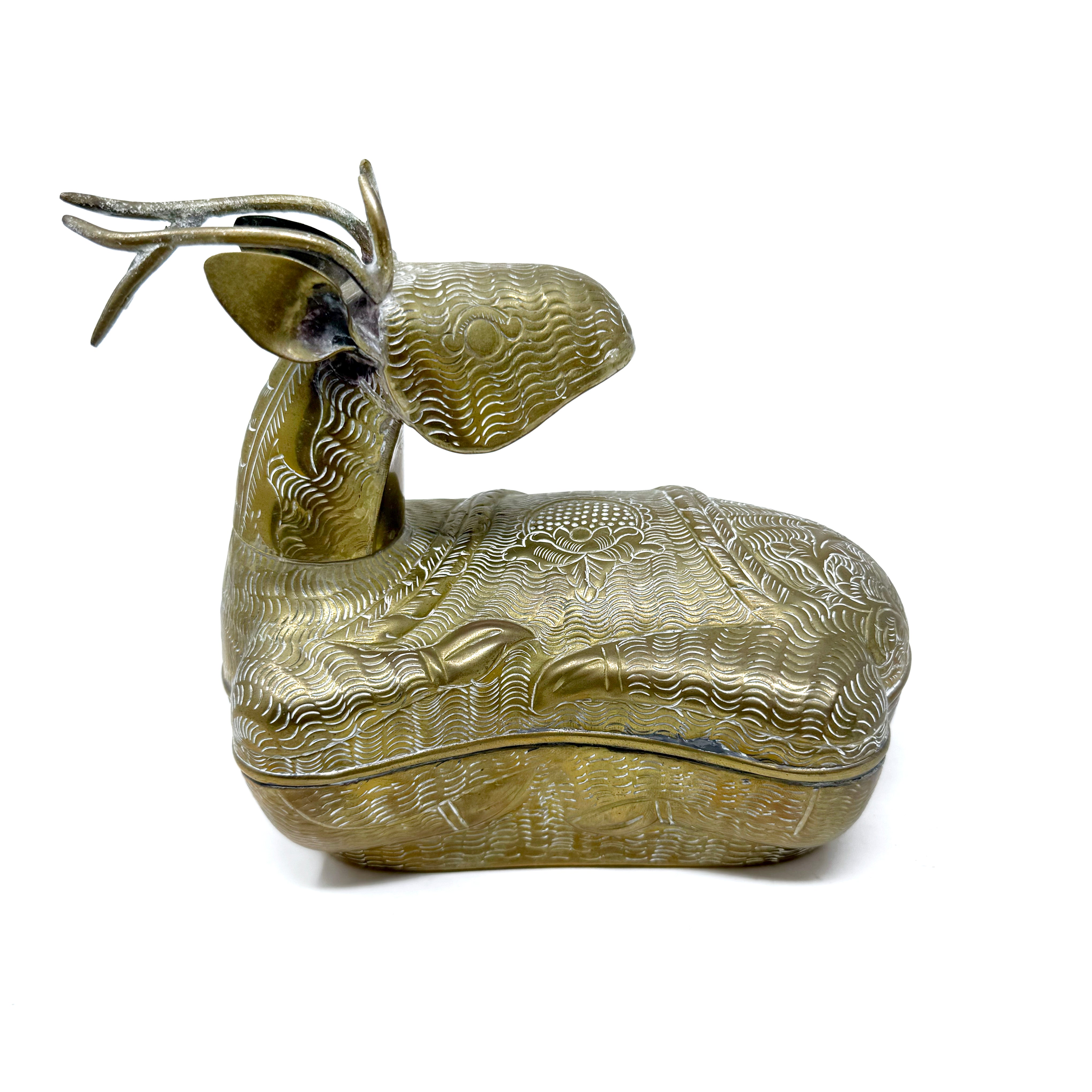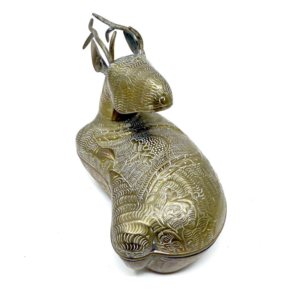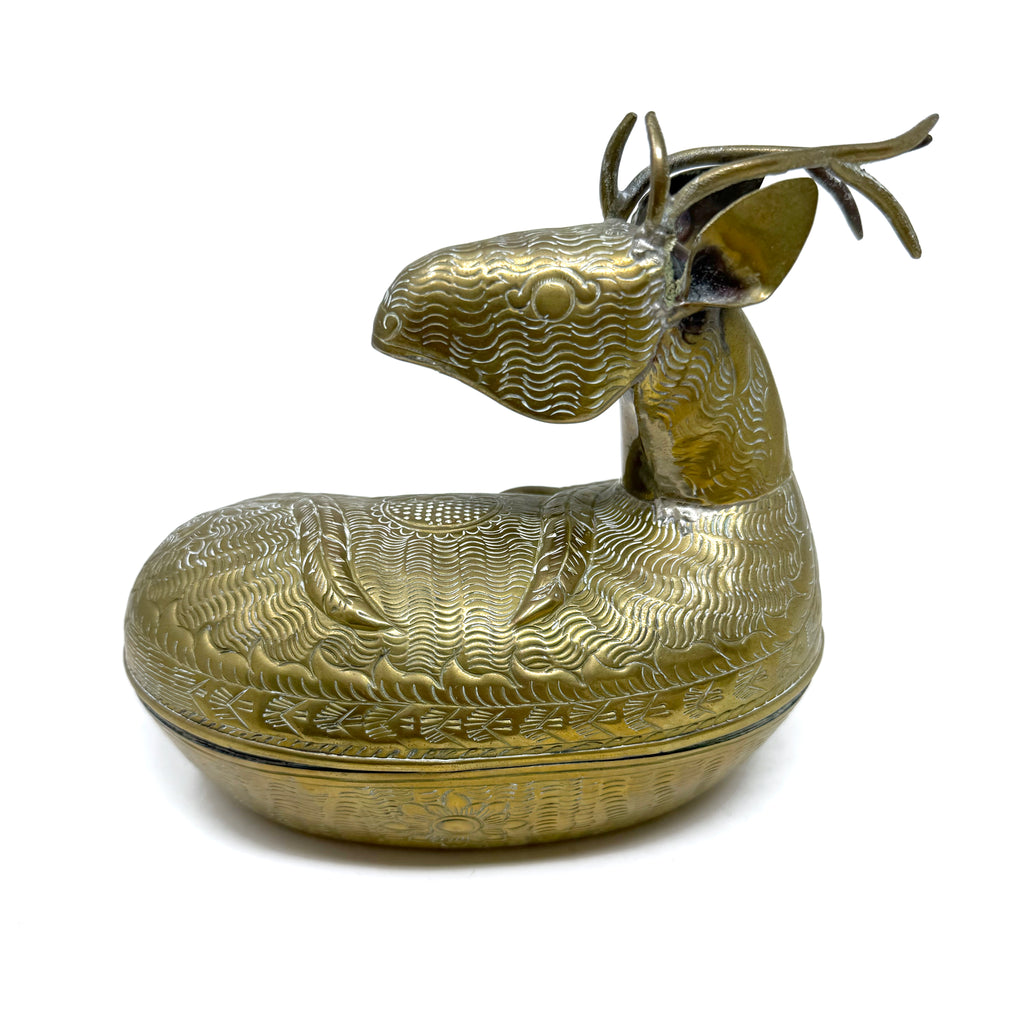 Dancer is a stunning brass betel box - an heirloom collector's piece perfect for the holidays! Dancer measures 6" long x 3.5" deep x 5.5" tall (to tip of antlers). A timeless, festive addition to any home. Plus, it's a conversation starter that's sure to bring plenty of joy this season! And bonus...she was made for Bloomingdale's!