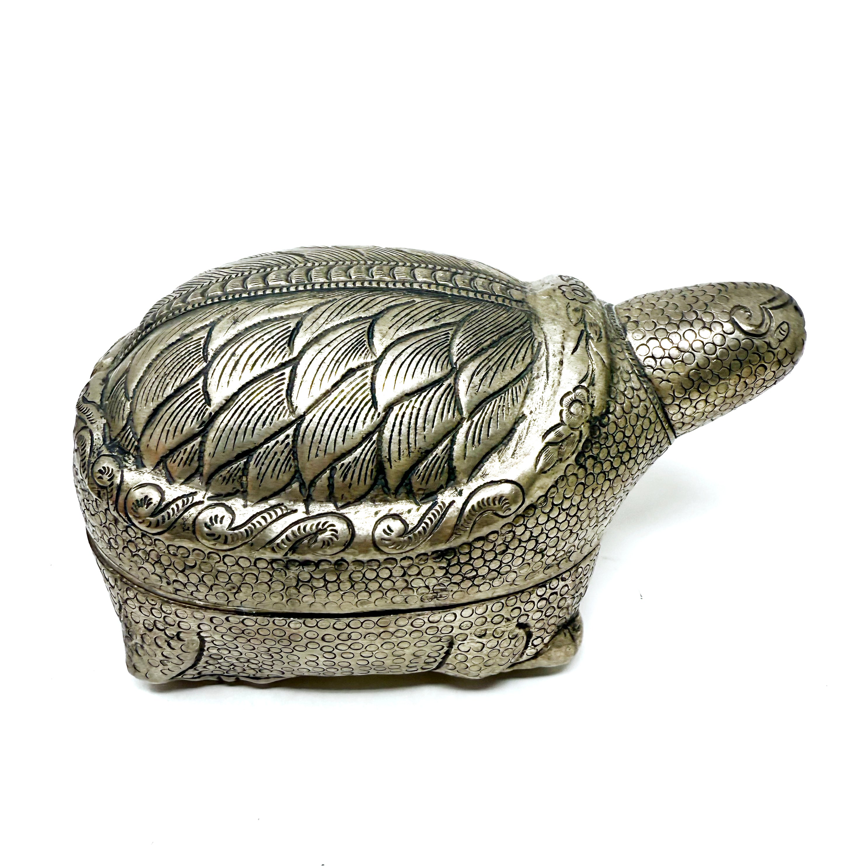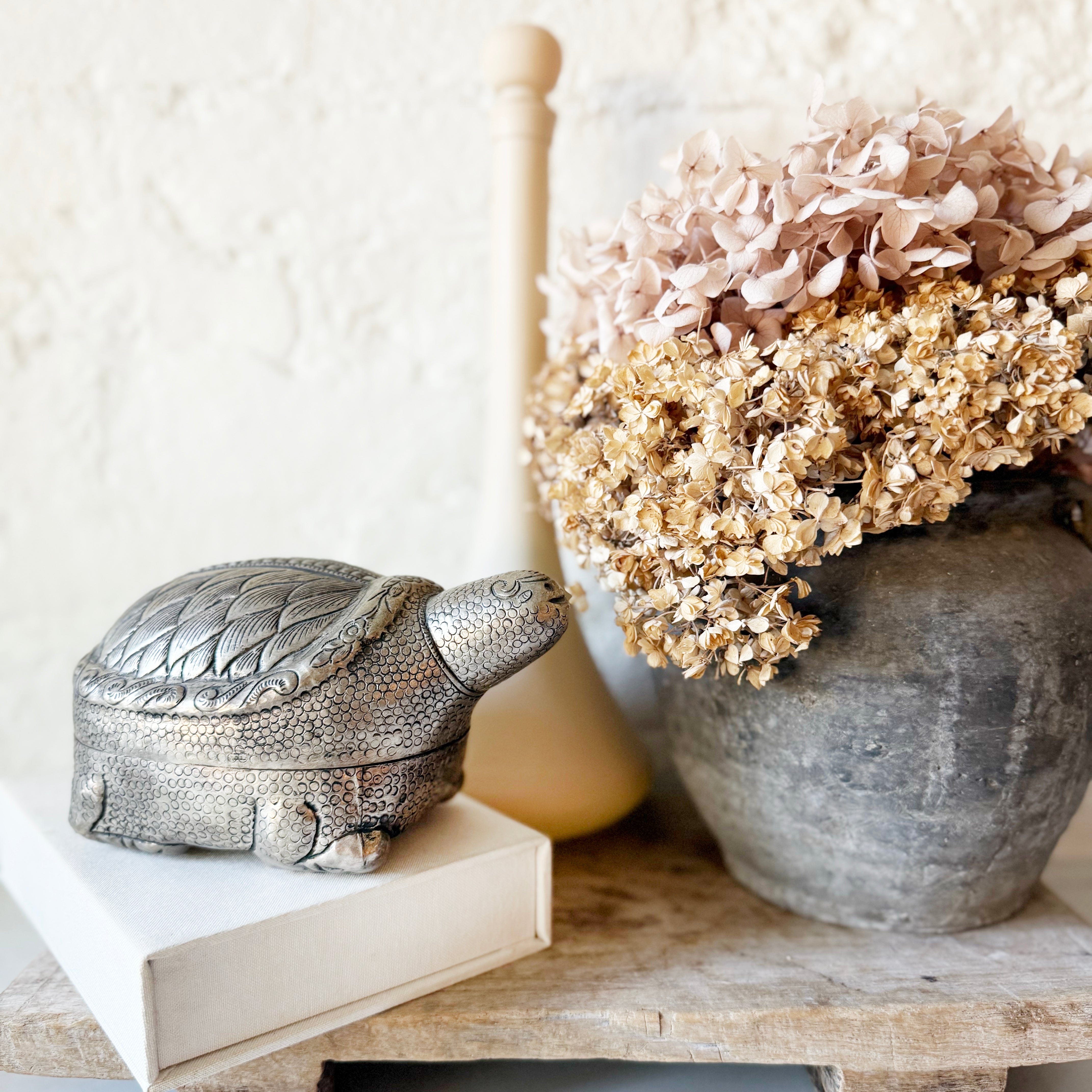 Helen, a rare turtle betel nut box, is proof that design doesn’t always have to be serious to be seriously good. Highly collectible, totally quirky, and just the right amount of nostalgic, she adds unexpected charm to any vignette. Helen is the most stylish reptile you'll ever own! She measures 7" long x 5" tall (lidded).