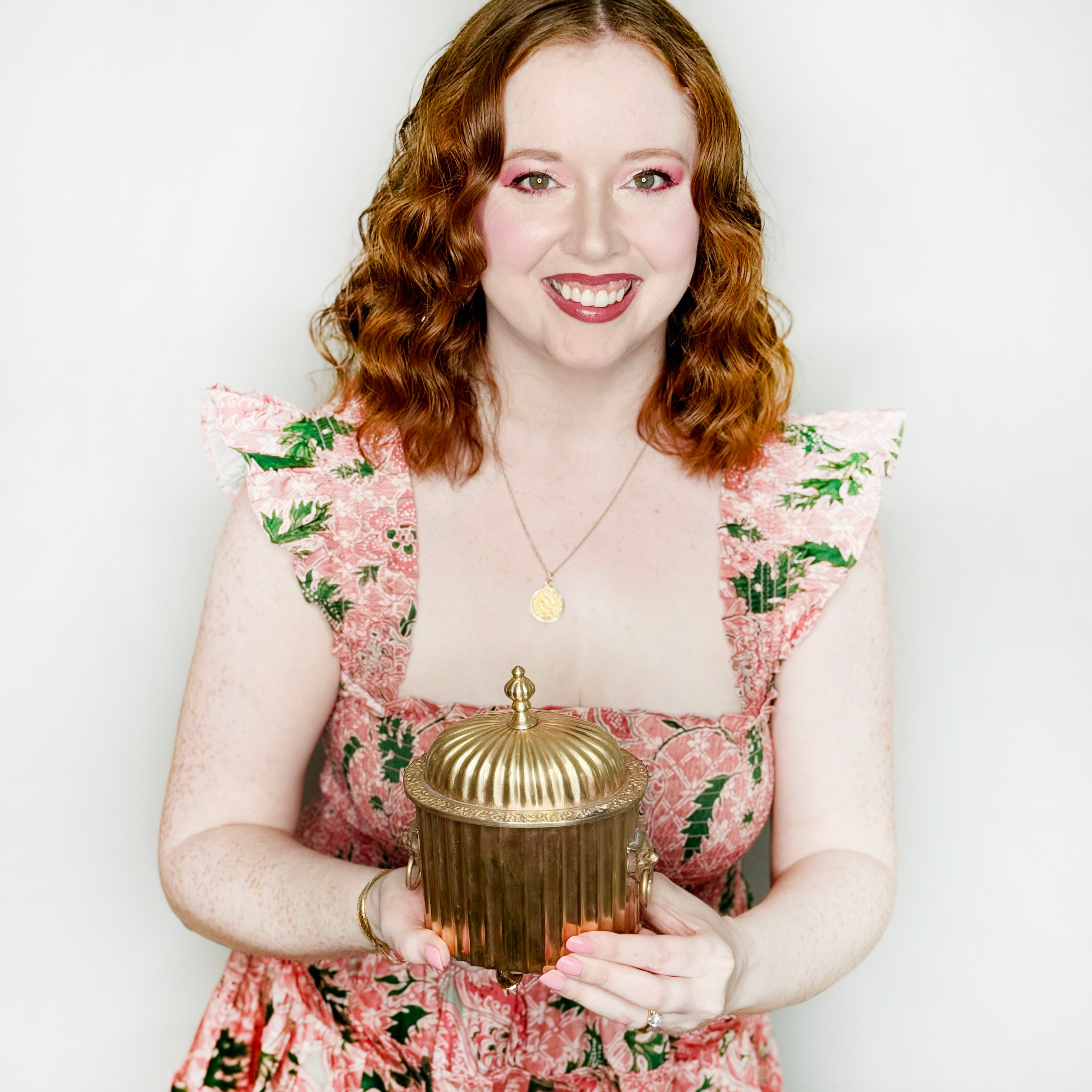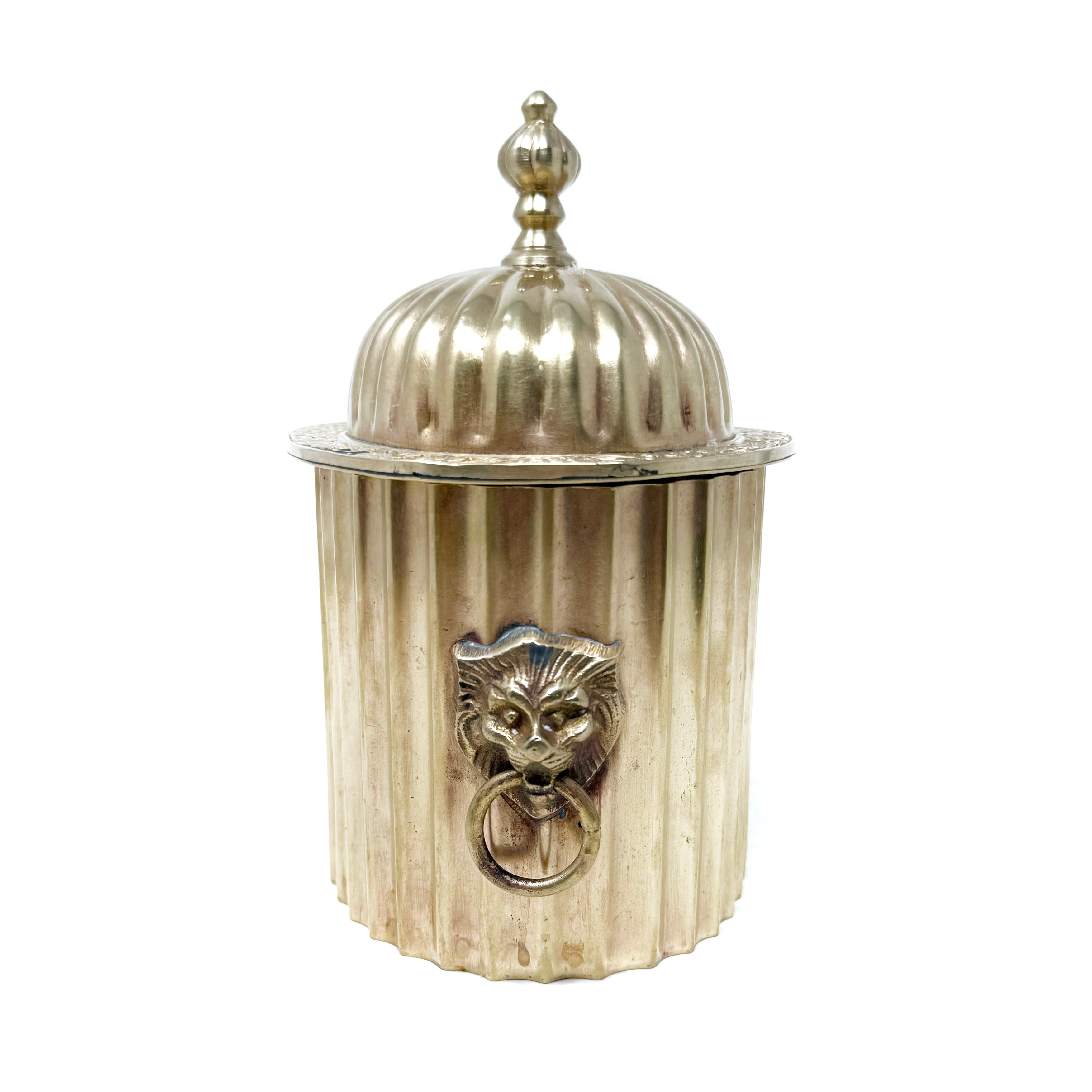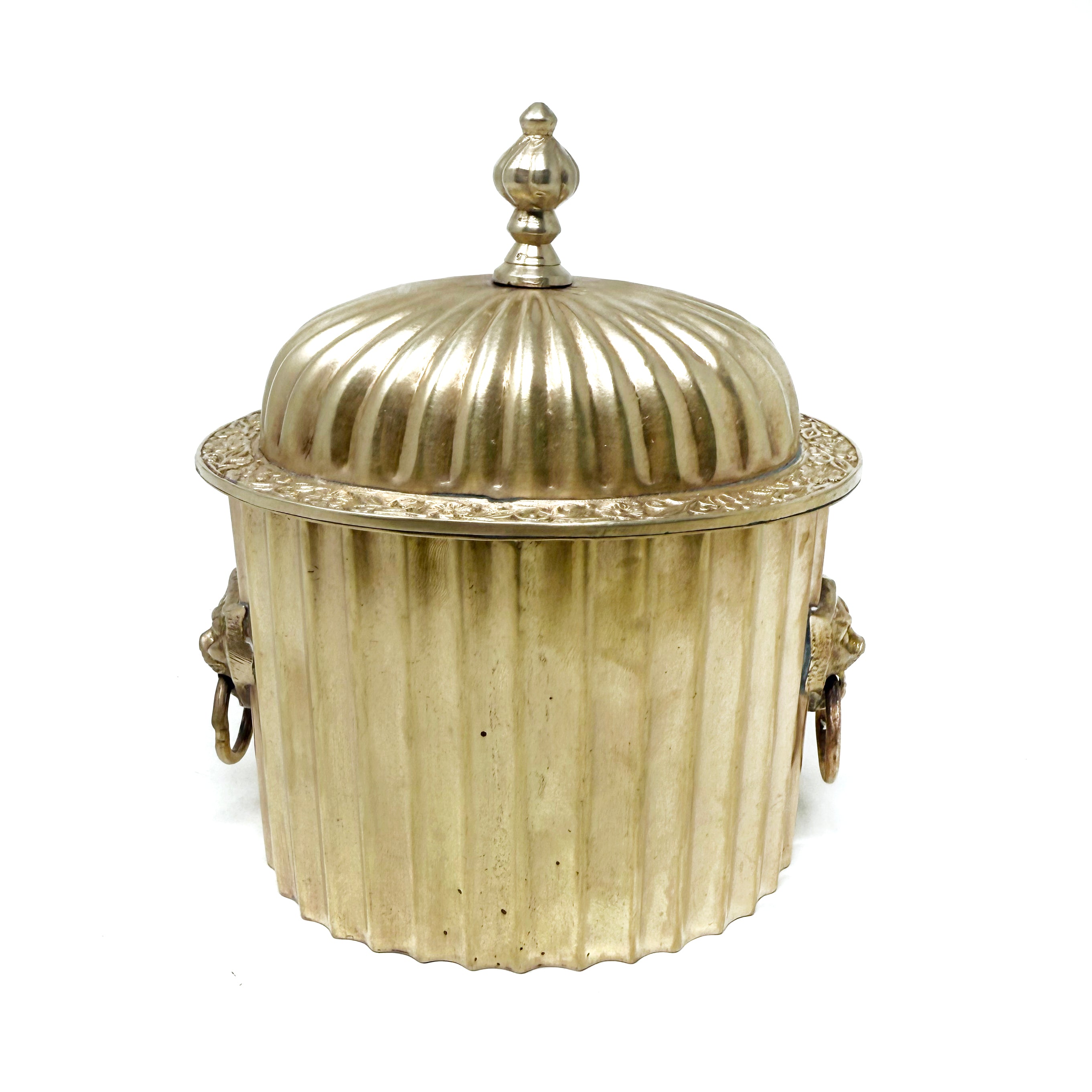 The lions head detailing on this box makes it so special. You will simply adore having this beauty in your home! Jane dates to the 1970s and measures 5.5" wide x 6.5" tall (lidded).