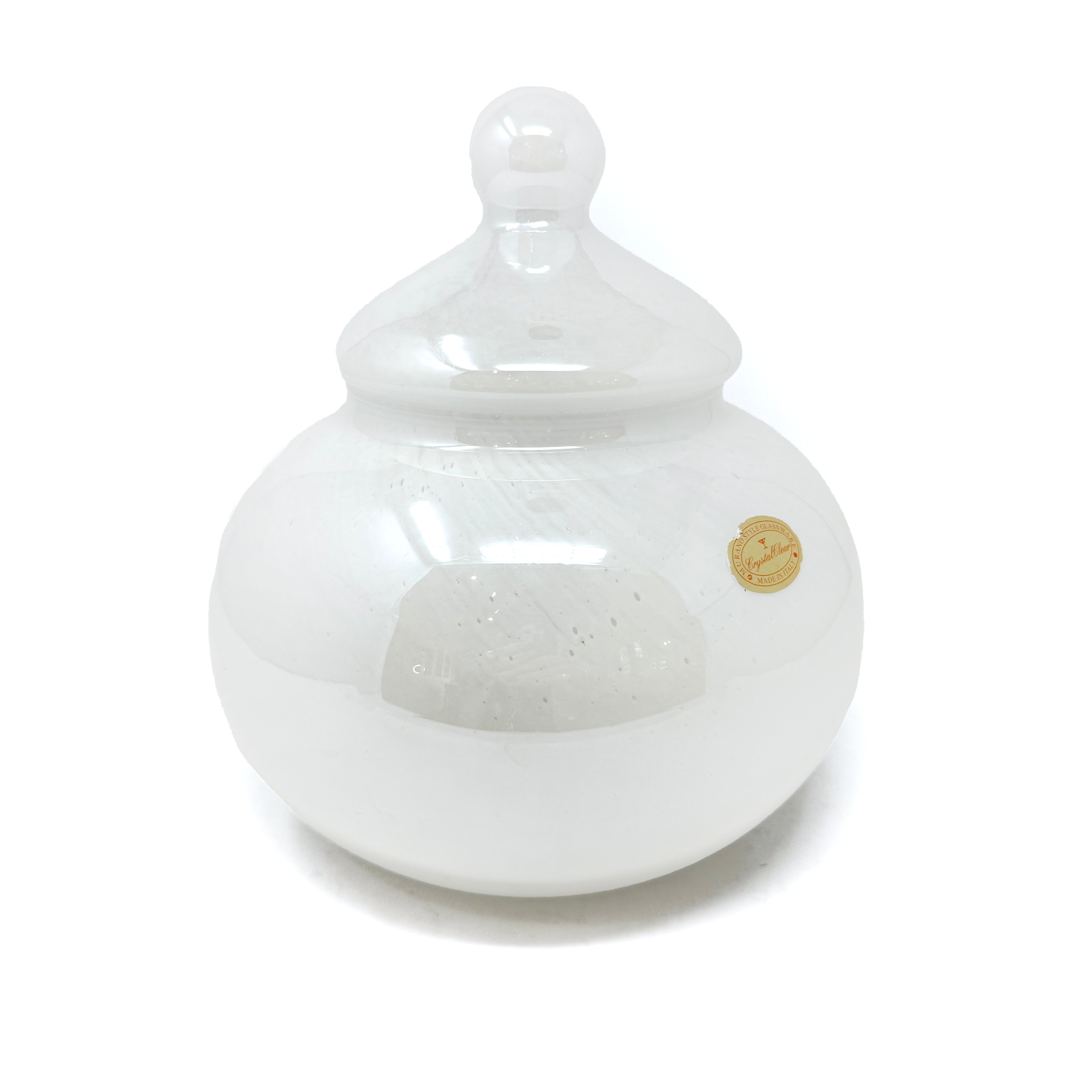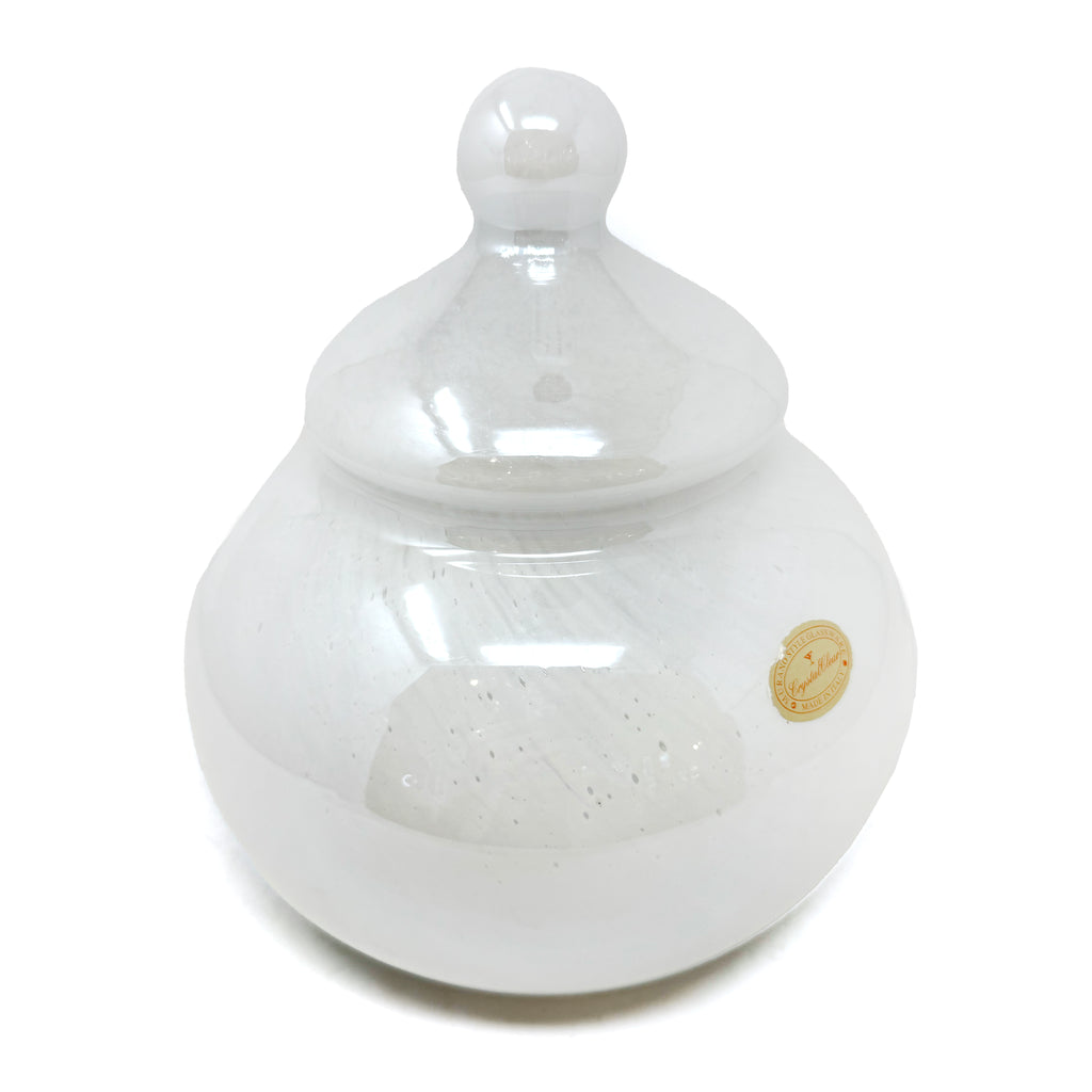 For the discerning collector: this massive white-swirl Murano glass candle vessel balances size and serenity with the iconic craftsmanship that only Murano can deliver. Lucia's rare, she’s elegant, and she’s the kind of statement piece that transforms candlelight into collectible art! She measures 9.5" tall x 7.5" diameter.