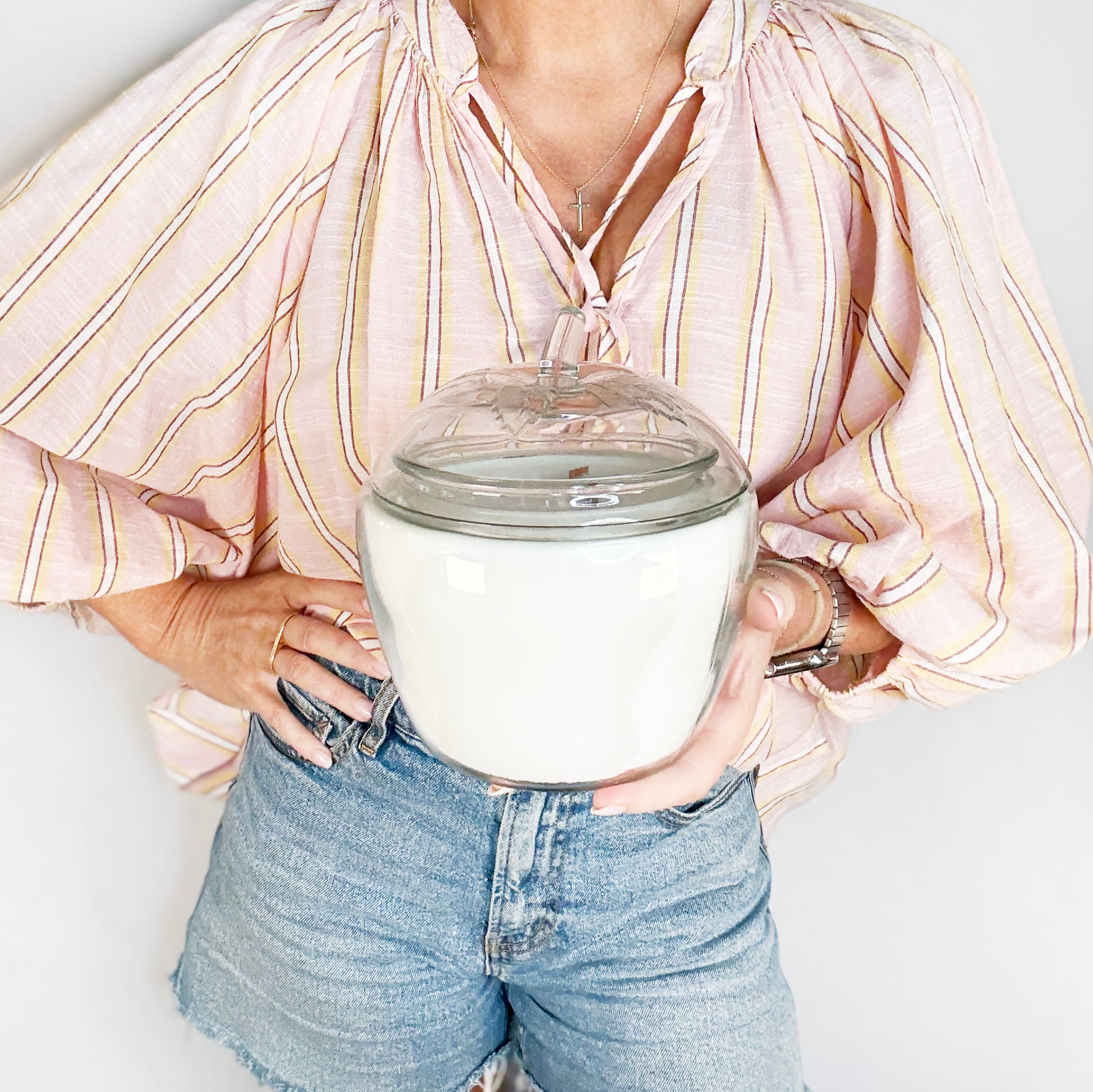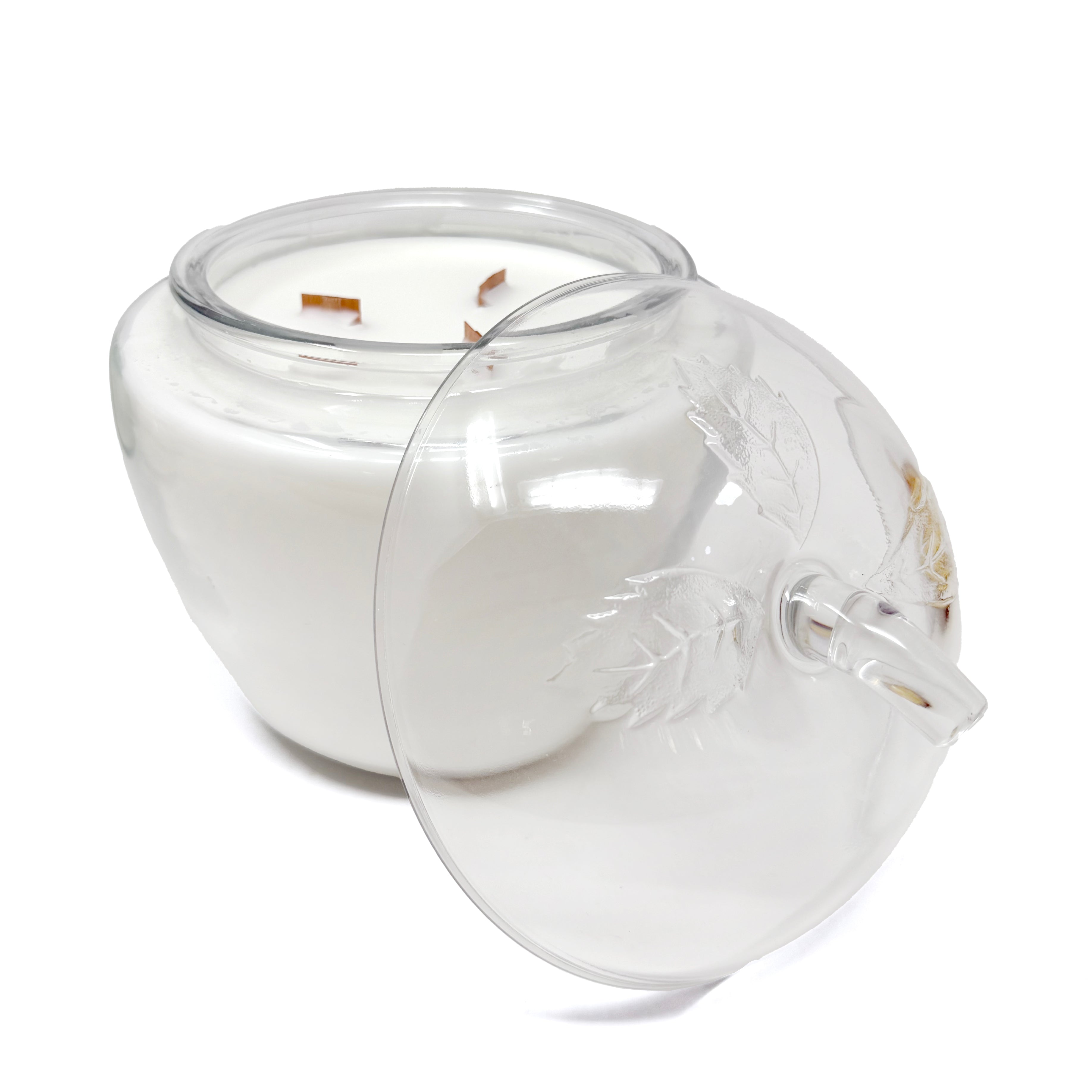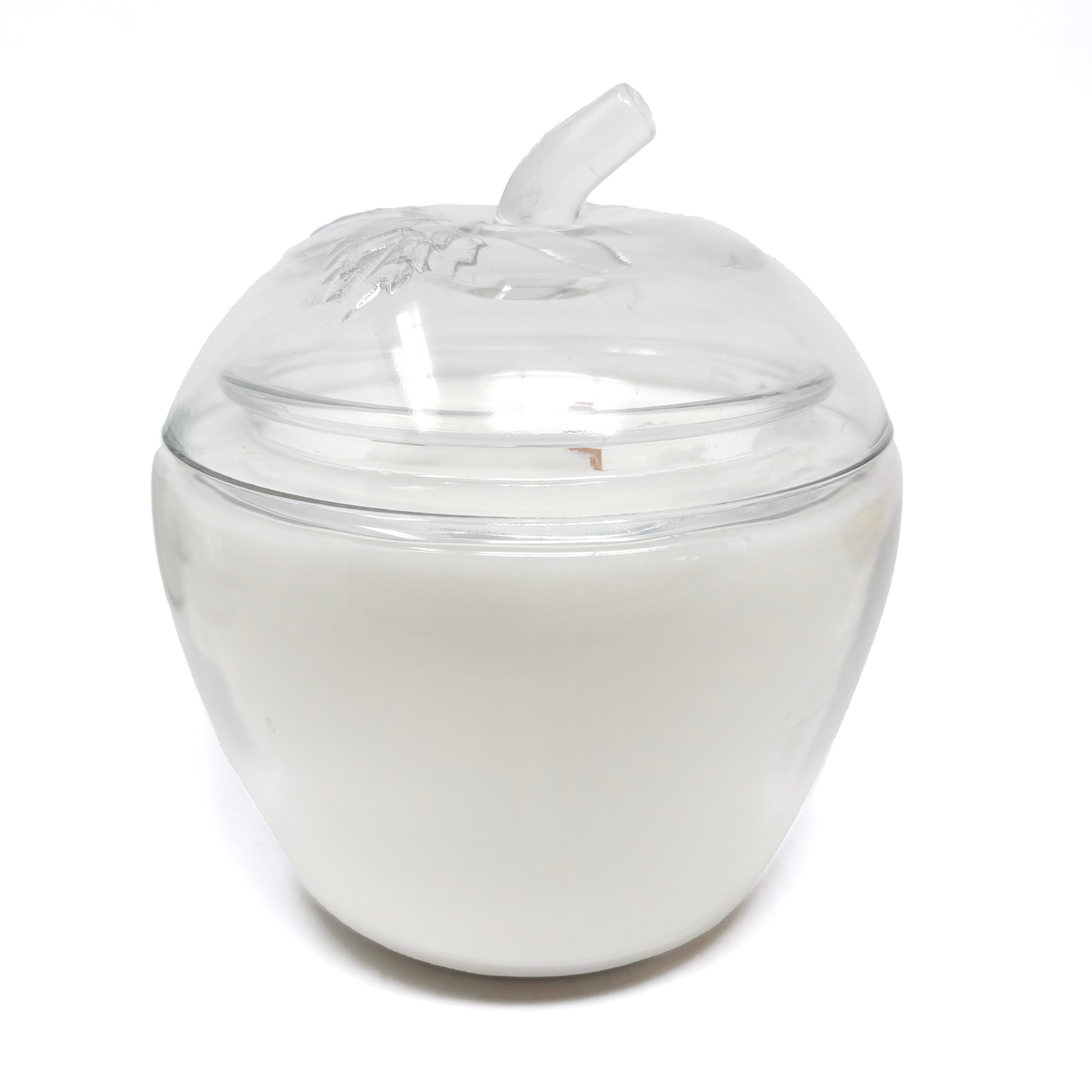 An apple a day, but make it decorative. This vintage clear glass apple candle is sweet, simple, and just a little nostalgic! Miss Margot has a large, substantive wax load and measures 6.5" diameter x 7.5" tall. The perfect teacher gift too!