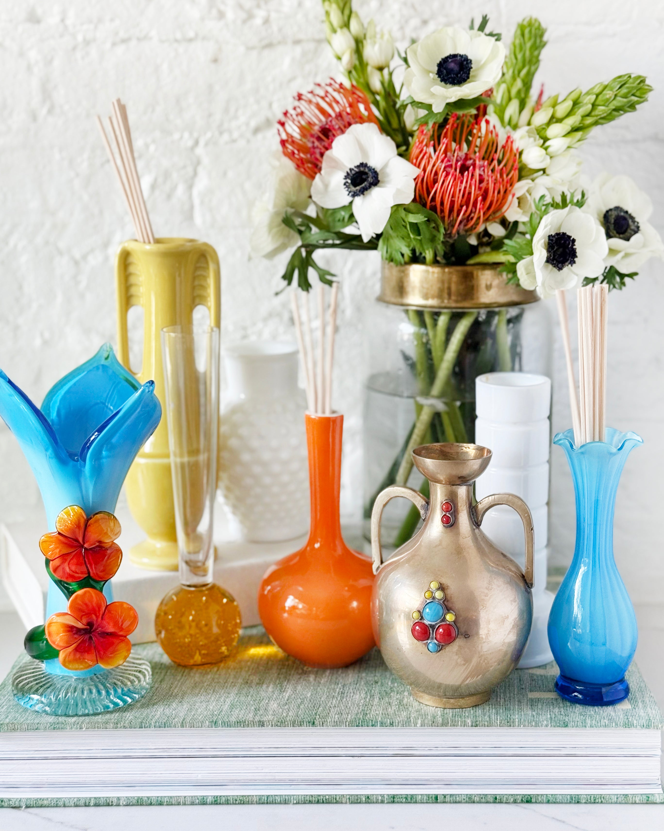 Scent meets sculpture in this vintage Murano glass diffuser — a red-and-white floral showstopper that perfumes your space while looking like it belongs in a Venetian art museum. Mila dates to the 1960s and measures 6.5" tall.