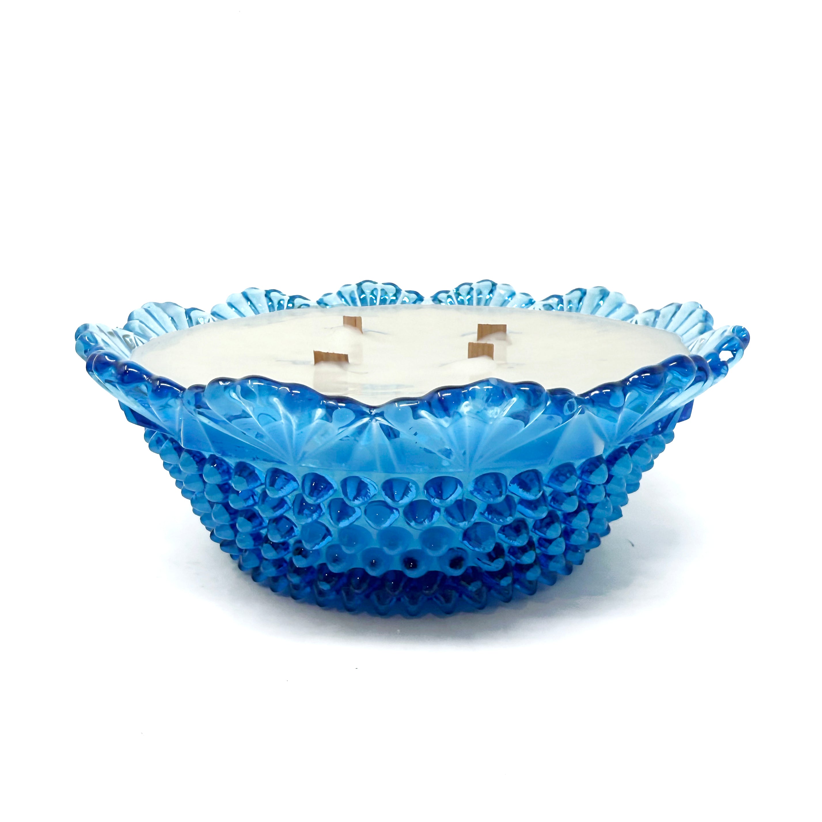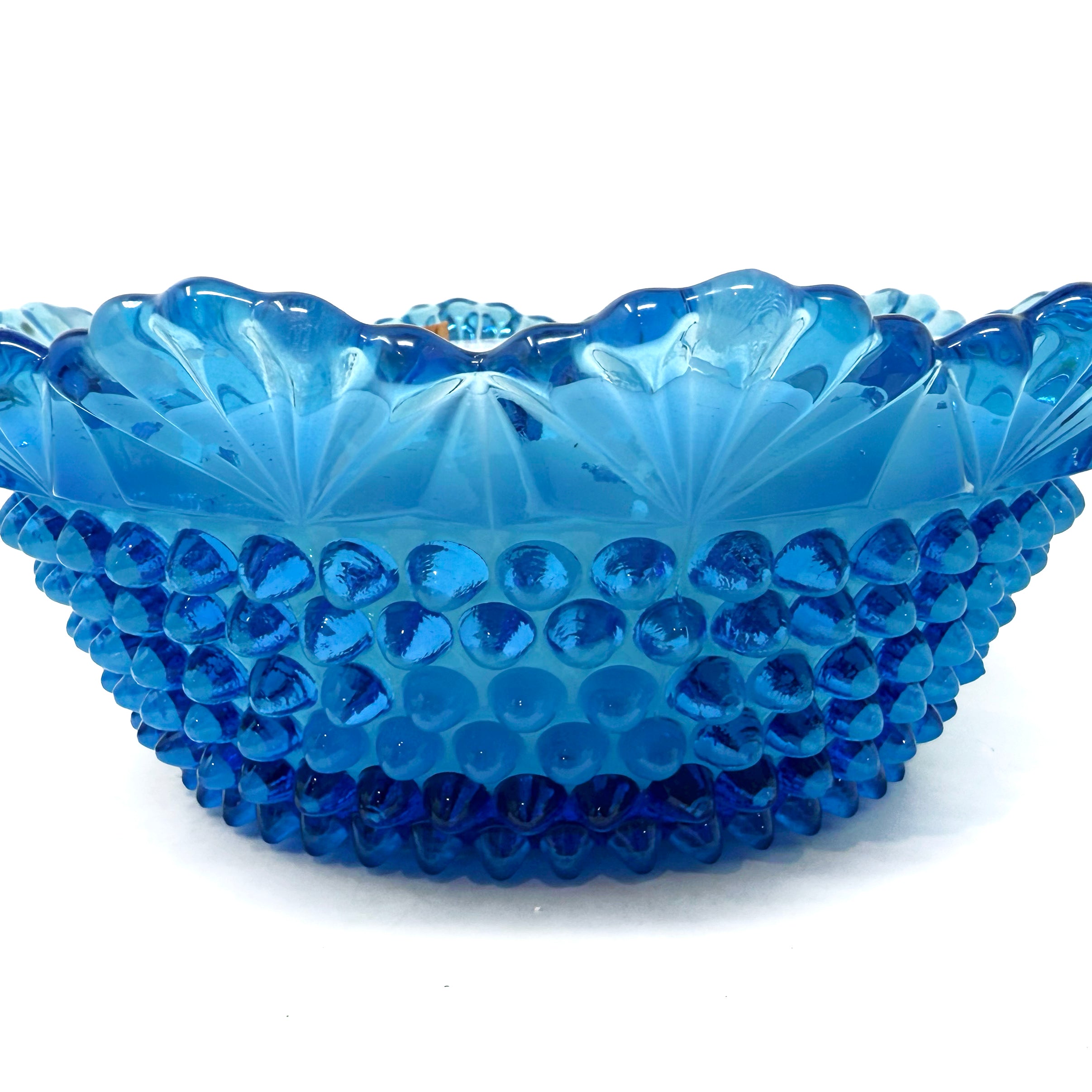 A blue ribbon beauty! Generously sized, richly hued, and covered in Fenton’s signature hobnail texture— Miss Nancy easily takes first place in the “most likely to get compliments” category. She dates to the 1950s and measures 8" diameter x 3" tall.