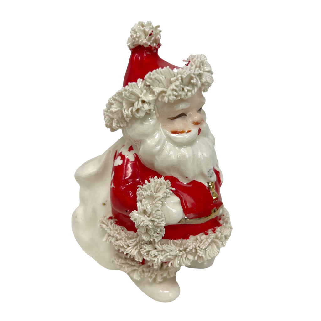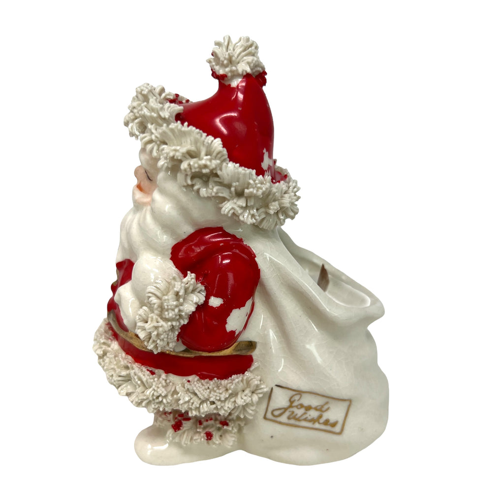 You're not ready for Noel, but she's ready for you! Noel is just about the cheeriest "spaghetti" Santa dating to the 1950s. Her bag is loaded with holiday spirit and the dreamiest Smokey Birch + Tobacco scent. Noel will make a delightful addition to any mantle this holiday season. She measures 4.5” tall (lidded) x 4" long x 3" wide.